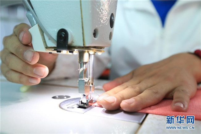 5月15日,在畢節(jié)市特殊教育學校,一名學生在進行縫紉加工。 新華社發(fā)(王純亮 攝)