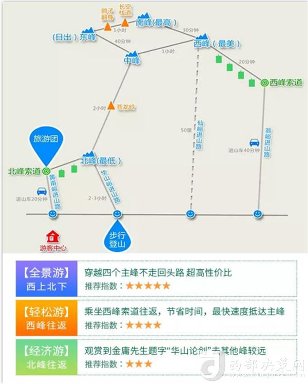 華山導(dǎo)覽(索道線路)示意圖