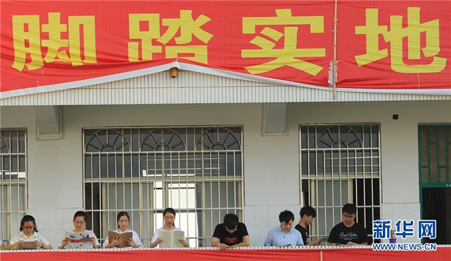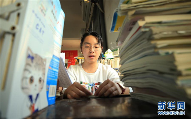 6月4日,在湖南省衡陽(yáng)縣第一中學(xué),高三學(xué)生在教室外的走廊看書(shū)。新華社發(fā)(曹正平攝)