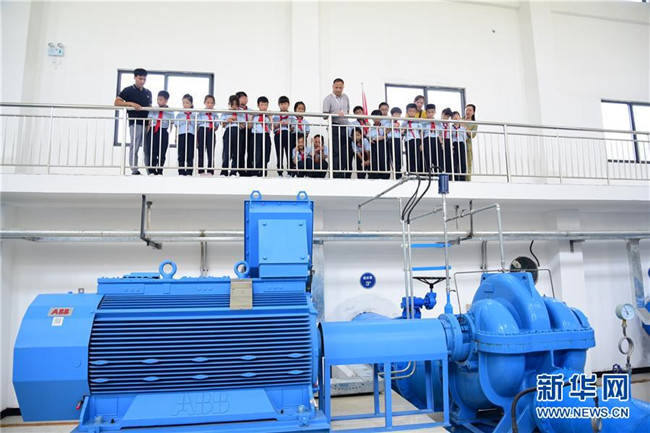 6月4日,自來水廠工作人員向小學(xué)生講解自來水生產(chǎn)過程。