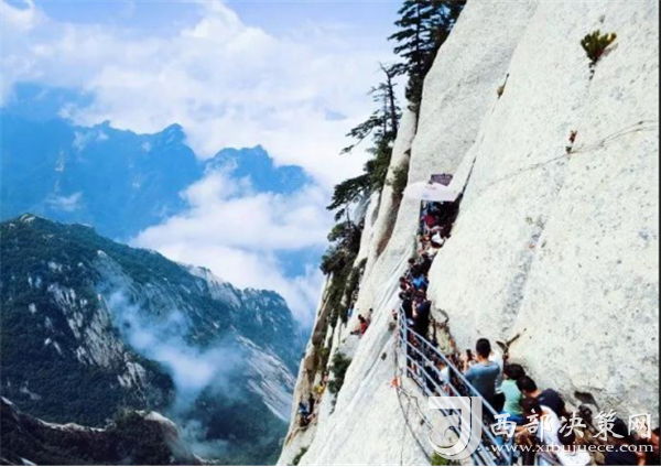 這是一座非常難以攀登的山,公元7世紀前,幾乎無人登頂,后來,道士們鑿出了條小路,這就是民間說的“自古華山一條路”。