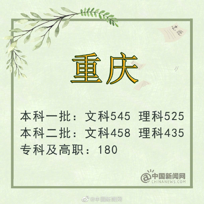 23日,重慶市公布2019年全國普通高校各類招生錄取最低控制分數(shù)線。第一批本科文史類545分、理工類525分;第二批本科文史類458分、理工類435分;文高職??婆?80分。