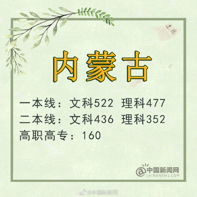 據(jù)內(nèi)蒙古招生考試信息網(wǎng)網(wǎng)站消息,6月23日,2019年內(nèi)蒙古高考分數(shù)線出爐:普通文科一批522分、二批436分、高職高專160分;普通理科一批477分、二批352分、高職高專160分;蒙授文科一批398分、二批320分、高職高專120分;蒙授理科一批348分、二批274分、高職高專120分。