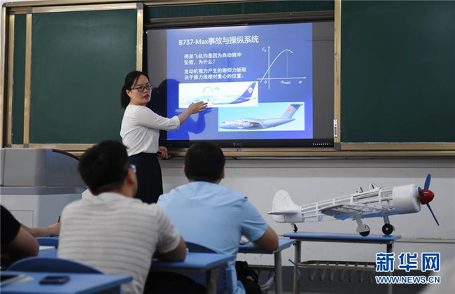 在西北工業(yè)大學航空學院,副教授劉艷在飛行器設計與工程專業(yè)的飛行動力學課程上分析波音客機墜毀原因(6月14日攝)。新華社記者李一博攝