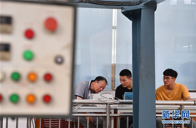 在西北工業(yè)大學航海學院消聲水池實驗室,學生在調試實驗儀器(6月17日攝)。