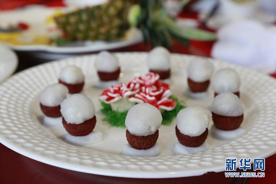 本次紅云宴對荔枝品種進行精挑細選,與多種嶺南特色食材搭配,烹制出富有嶺南意蘊和西關(guān)風味的10道佳肴。新華網(wǎng) 林曉蕾攝