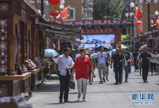 眼下正值新疆旅游業(yè)旺季。作為烏魯木齊著名景點,近一個月來,新疆國際大巴扎景區(qū)每天接待游客近8萬人次,人們在此體驗購物、品味美食、感受當地民俗風情。 新華社記者 潘瑩 攝