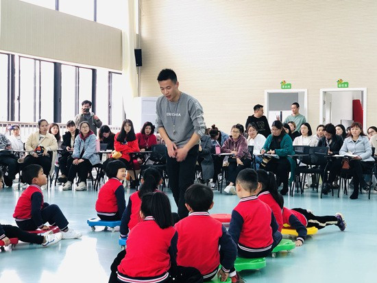 3月29日,浙江省建德市欽堂中心幼兒園教師鄭勇江在執(zhí)教大班健康活動(dòng)公開課《趣味運(yùn)動(dòng)會(huì)》。鄭勇江供圖