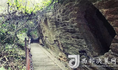高46米,石階91級,這里有塊石頭懸在上空,好像搖搖欲墜。游人從這經(jīng)過,都會害怕懸石突然跌落,石上刻有“驚心石”三字。過驚心石到平心石,人們才能將一顆懸著的心放下。從驚心到平心,游人才長長舒了一口氣。