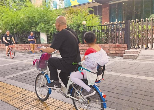 七月二十二日下午五時(shí),家長(zhǎng)到培訓(xùn)班接孩子放學(xué)。記者 郭妍 攝