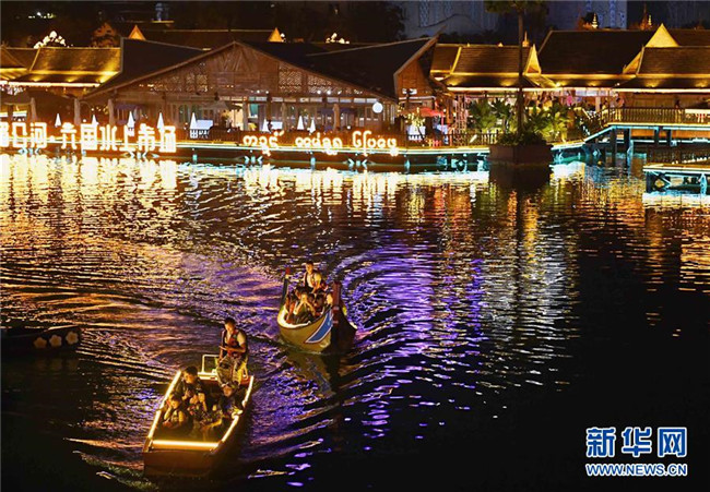 夜幕降臨,云南省西雙版納傣族自治州景洪市瀾滄江畔燈火璀璨,人頭攢動(dòng),熱鬧非凡。