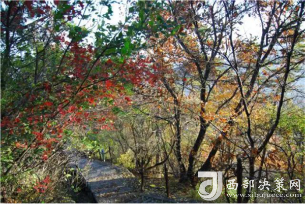 從山腳下的郁郁蔥蔥到山頂上的紅黃相間,華山上的每一個(gè)臺(tái)階都浸染在了紅葉的絢爛中。