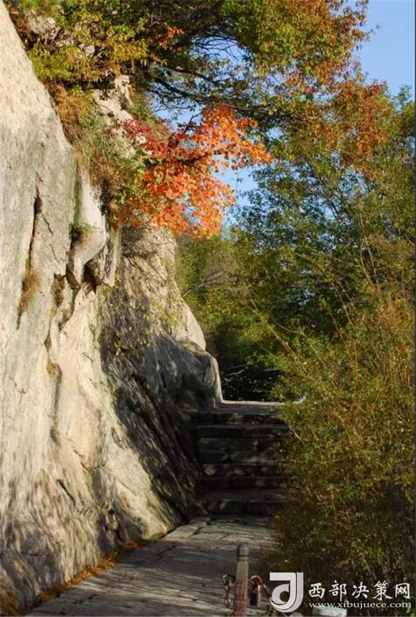 秋天的華山,溫度適中,紅葉滿山,山崖為底,松檜為墨,是休閑旅游的最佳季節(jié)。