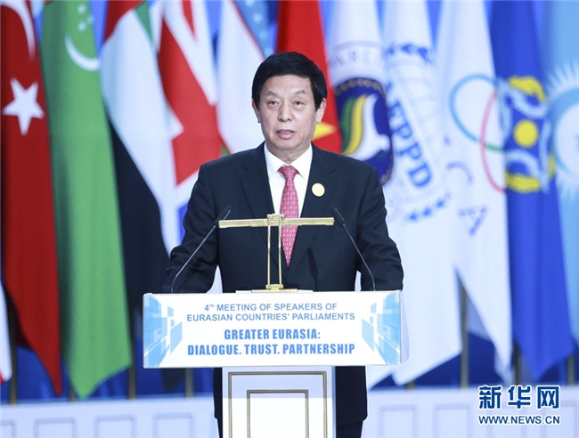 第四屆歐亞國(guó)家議長(zhǎng)會(huì)議24日在哈薩克斯坦首都努爾蘇丹舉行。全國(guó)人大常委會(huì)委員長(zhǎng)栗戰(zhàn)書出席會(huì)議開(kāi)幕式并作主旨發(fā)言。