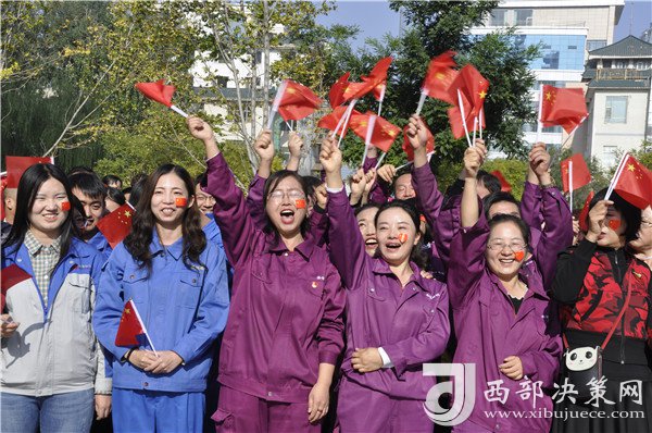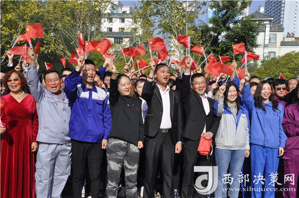 快閃現(xiàn)場(chǎng),一位位身著工服或民族服裝的職工以及佩戴獎(jiǎng)?wù)潞褪趲У膭谀?、先進(jìn)人物1000多名各行業(yè)職工,揮舞著手中的國(guó)旗,用快閃的形式,唱響《我和我的祖國(guó)》,用職工群眾的深情告白為祖國(guó)慶生、為新時(shí)代喝彩。