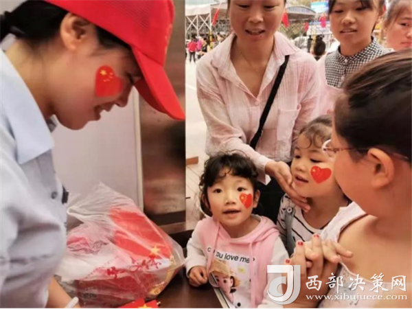 景區(qū)工作人員與游客共同慶祝新中國成立70華誕
