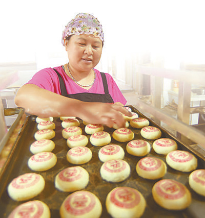 劉家果子鋪老板娘姚秀君在做糕點(diǎn)。林松 攝