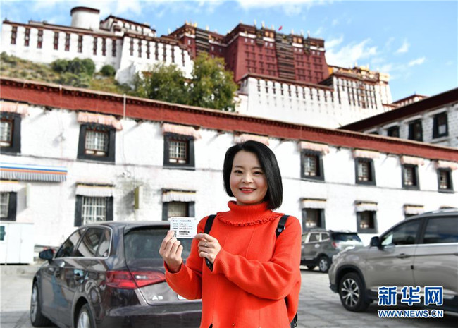10月15日,從西寧來(lái)的游客張書(shū)培展示她用身份證換取的布達(dá)拉宮散客免費(fèi)預(yù)約券。