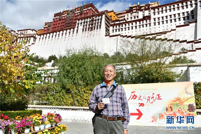 10月15日,來(lái)自廣東的游客王衛(wèi)東展示他用身份證換取的布達(dá)拉宮散客免費(fèi)預(yù)約券。