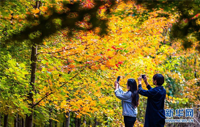 金秋時節(jié),河北邯鄲市峰峰礦區(qū)義井鎮(zhèn)太行藥王谷景區(qū)內(nèi)的紅楓由綠轉(zhuǎn)紅,“楓”情醉人。 新華社記者 王曉 攝