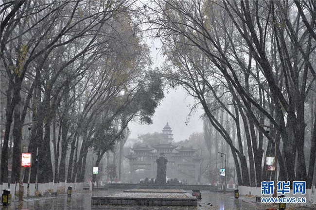 10月31日拍攝的雪中的青海省西寧市人民公園。 新華社記者張龍攝