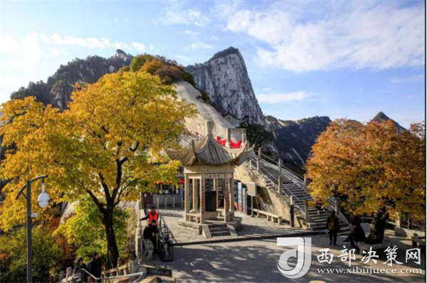 秋色已經(jīng)簇擁起了西岳華山,金色的秋天讓華山多了一點秀色。