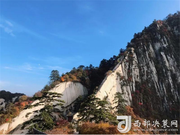 又因峰巔有巨石形狀好似蓮花瓣,古代文人多稱(chēng)其為蓮花峰、芙蓉峰。西峰為一塊完整巨石,渾然天成。西北絕崖千丈,似刀削鋸截,其陡峭巍峨、陽(yáng)剛挺拔之勢(shì)是華山山形之代表,因此古人常把華山叫蓮花山。西峰南崖有山脊與南峰相連,脊長(zhǎng)300余米,石色蒼黛,形態(tài)好像一條屈縮的巨龍,人稱(chēng)為屈嶺,也稱(chēng)小蒼龍嶺,是華山著名的險(xiǎn)道之一。