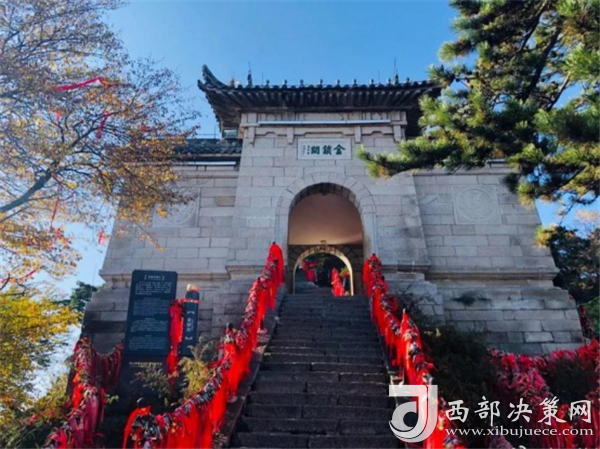 金鎖關(guān)是建在三峰口的一座城樓般石拱門(mén),是經(jīng)五云峰通往東、西、南、中四峰的咽喉要道,鎖關(guān)后則無(wú)路可通,所以又稱(chēng)為通天門(mén)。關(guān)內(nèi)關(guān)外登山路兩側(cè)鐵索上掛滿(mǎn)的情侶鎖、平安鎖重重疊疊,紅繩彩線(xiàn)迎風(fēng)搖曳,也是關(guān)前一道美麗的風(fēng)景。