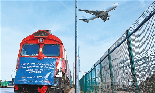 10月25日,中歐班列(義烏—列日)“世界電子貿易平臺(eWTP)菜鳥號”首趟列車抵達比利時列日物流多式聯(lián)運貨運場站。這是首個貫通中國長三角區(qū)域、中亞和歐洲并服務于跨境電子商務的專列。 新華社記者 潘革平攝