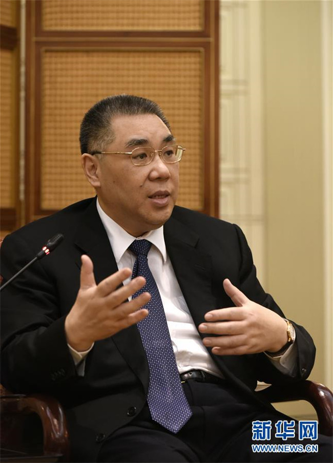 澳門特區(qū)行政長(zhǎng)官崔世安在澳門特區(qū)政府總部接受采訪(11月21日攝)。新華社記者 徐亮 攝