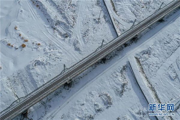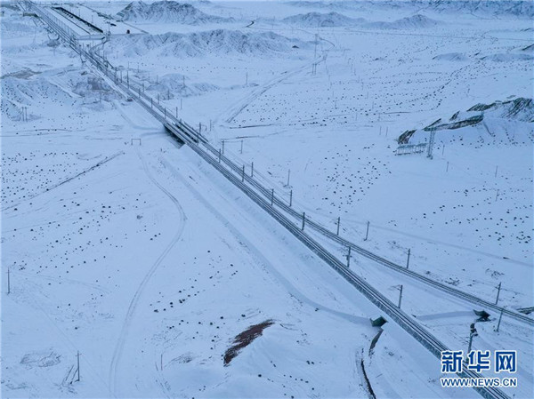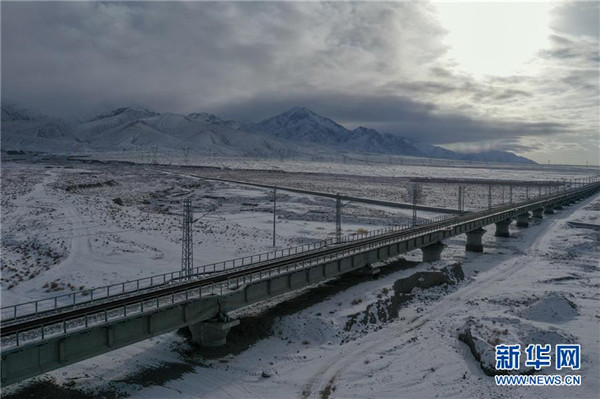 這是12月16日無(wú)人機(jī)拍攝的敦煌鐵路大柴旦站附近的一處鐵路橋。12月18日,隨著肅北至馬海區(qū)段通車(chē),敦煌鐵路全線開(kāi)通運(yùn)營(yíng),中國(guó)西北地區(qū)形成首條環(huán)形鐵路網(wǎng)。新華社記者張龍攝