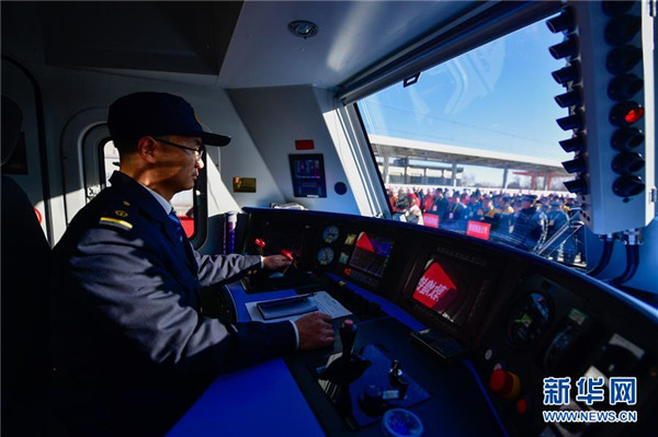 12月18日,在青海格爾木,中國(guó)鐵路青藏集團(tuán)有限公司西寧機(jī)務(wù)段列車(chē)司機(jī)季仁千扎西在開(kāi)通儀式上準(zhǔn)備發(fā)車(chē)。當(dāng)日,隨著肅北至馬海區(qū)段通車(chē),敦煌鐵路全線開(kāi)通運(yùn)營(yíng),中國(guó)西北地區(qū)形成首條環(huán)形鐵路網(wǎng)。新華社記者張龍攝