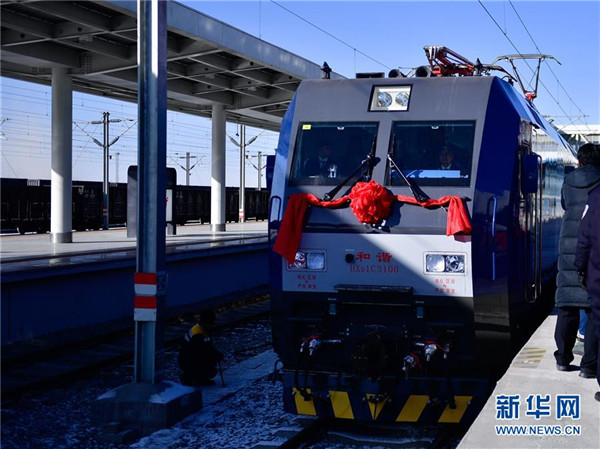 12月18日,在青海格爾木,列車(chē)駛出格爾木站。當(dāng)日,隨著肅北至馬海區(qū)段通車(chē),敦煌鐵路全線開(kāi)通運(yùn)營(yíng),中國(guó)西北地區(qū)形成首條環(huán)形鐵路網(wǎng)。新華社記者張龍攝
