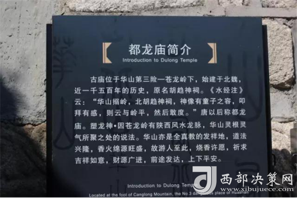 廟始建時稱胡趨神寺?!端?jīng)注》記述:“化山搦嶺,北胡趨寺,神像有童子之容。祠祀有感,則云與之平,然后敢度”。清以后,廟被俗稱為都龍廟,又作督龍廟,廟內(nèi)塑像為龍君,怒目圓睜,須髭飄冉,形象生動威武。廟的更名大凡與清乾隆時陜西巡撫畢沅開鑿蒼龍嶺道路、傷了龍脈的傳說有關(guān)。據(jù)民間傳,自畢沅開路傷龍脈后,蒼龍再無力行云布雨以護(hù)農(nóng)桑,百姓便塑像祭奉香火以示懺悔,祈請并督促蒼龍病體康復(fù),佑百姓豐年太平。(供稿:華旅集團(tuán)營銷中心)