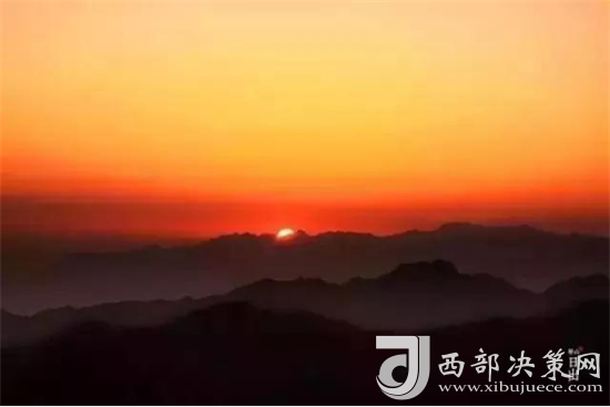 是時(shí),但見夜幕自東方悄然隱退,晨曦初露,漸漸霞光瑰麗,云源奔涌。瞬間,一輪火球噴薄而出,繼而光芒四射,氣象萬(wàn)千,整個(gè)世界大放光明,游人身心為之一振。待云霧散盡,蒼松翠柏,則更加清麗悅目,美妙神奇。故而,游名山者必登華山,登華山者必觀日。華山日出亦被列為華山自然風(fēng)光中的重要景觀之一。