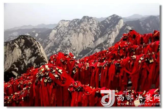 華山是一座愛情的殿堂。發(fā)生在華山上的每一個(gè)愛情故事都讓人感動(dòng)、讓人頂禮膜拜。眾所周知的神話傳說(shuō)《寶蓮燈》中,三圣母為了愛情,被二郎神用巨石壓在華山峰下;弄玉為了愛情,逃離安逸的生活,與蕭史雙雙來(lái)到華山,琴瑟合鳴;漢臣王咸不畏艱險(xiǎn),到華山尋找賢妻南陽(yáng)公主等等這些愛情故事,感天動(dòng)地,流傳不衰。也許是讓華山上這些動(dòng)人的愛情故事所感染,不知從什么時(shí)候開始,游人將自己對(duì)美好愛情的向往,對(duì)理想愛情固若磐石的期望用一把把閃閃的金鎖,堅(jiān)定的鎖在了華山之上,在華山的見證下,在華山神的保佑下,舉案齊眉、白頭偕老。