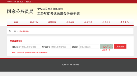 今晚,中央機關(guān)及其直屬機構(gòu)2020年度公務(wù)員招考公共科目筆試成績正式公布??忌稍谥醒霗C關(guān)及其直屬機構(gòu)2020年度考試錄用公務(wù)員專題網(wǎng)站查詢筆試成績和最低合格分?jǐn)?shù)線。