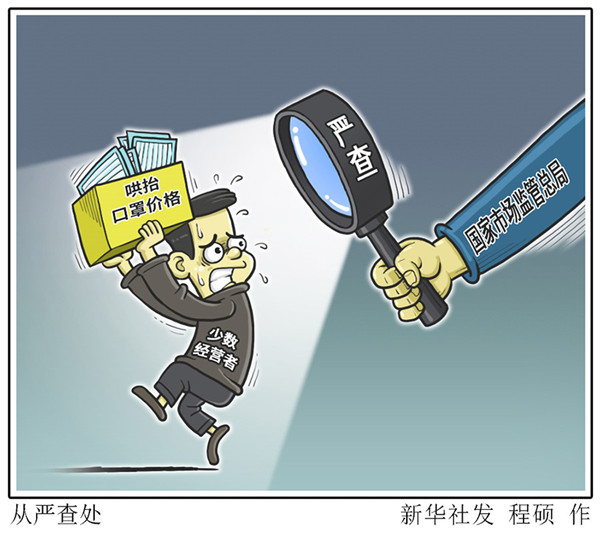 據(jù)介紹,1月25日,市場監(jiān)管總局發(fā)布公告,要求各級市場監(jiān)管部門依法從嚴從重從快打擊少數(shù)經(jīng)營者串通漲價、哄抬價格、價格欺詐等違法行為,堅決維護防疫用品市場價格秩序。公告下發(fā)后,全國各級市場監(jiān)管部門迅速出擊,嚴肅查處少數(shù)“發(fā)疫情財”的違法經(jīng)營者。