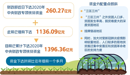 目前已累計(jì)下達(dá)2020年中央財(cái)政專項(xiàng)扶貧資金1396.36億元——