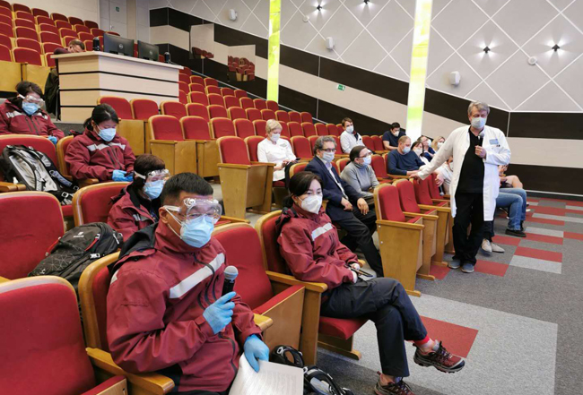 7天時(shí)間專家們已經(jīng)在當(dāng)?shù)氐?家醫(yī)院與醫(yī)學(xué)界同仁分享了經(jīng)驗(yàn),還通過視頻連線向在俄華僑華人、中資企業(yè)和留學(xué)生代表講解新冠防控科普知識(shí),解答相關(guān)問題,并交接了防疫物資。