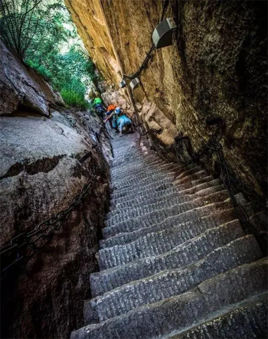 其如履薄刃,絕壑千尺的地勢(shì)使得很多游客膽戰(zhàn)心驚,其中最著名的就是韓愈大哭投書(shū)求助的故事。