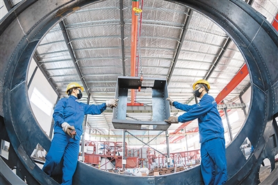 今年以來,江蘇省海安市在科學防控疫情的同時,及時為企業(yè)解難紓困,幫助民營企業(yè)迅速恢復(fù)產(chǎn)能、拓展國內(nèi)外市場,保持經(jīng)濟平穩(wěn)運行,確保務(wù)工人員有崗上、有活干、有錢賺。圖為5月17日,在海安市白甸鎮(zhèn)一企業(yè)車間內(nèi),工人在趕制建材裝備訂單。翟慧勇攝(人民視覺)