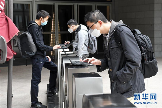 在深圳平安金融中心,企業(yè)員工在樓下使用筆記本電腦連接公司內(nèi)網(wǎng)下載安裝遠程辦公軟件,以便實現(xiàn)居家“云辦公”(2月10日攝)。新華社記者 梁旭 攝