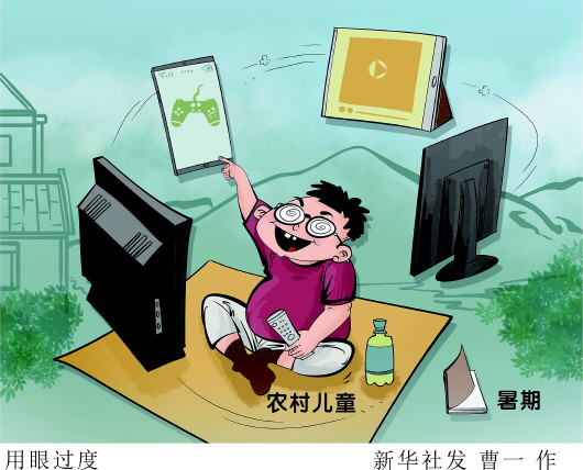 記者走訪發(fā)現(xiàn),暑期用眼過度的現(xiàn)象在不少農(nóng)村兒童中存在。有孩子跟著電視臺(tái)追劇,一看就是一整天;有家長(zhǎng)晨起上廁所,竟發(fā)現(xiàn)孩子“刷了一夜手機(jī)”;一位媽媽“吐槽”說,為了讓孩子少看電子產(chǎn)品,每天都要“斗智斗勇”:改密碼、藏充電線、沒收手機(jī)……