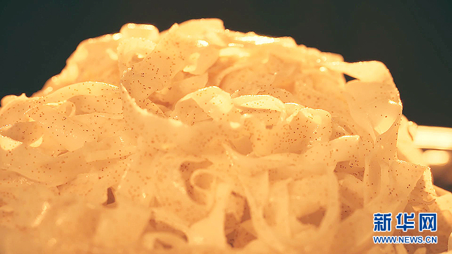 新鮮做成的沙河粉,晶瑩雪白,爽、韌、軟、滑,富有特色。新華網(wǎng)發(fā)