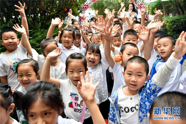 8月31日,西安市新城區(qū)后宰門小學(xué)一年級新生進(jìn)入校園。 當(dāng)日,陜西西安市的多所中小學(xué)迎來秋季開學(xué)報(bào)到。 新華社記者 劉瀟 攝