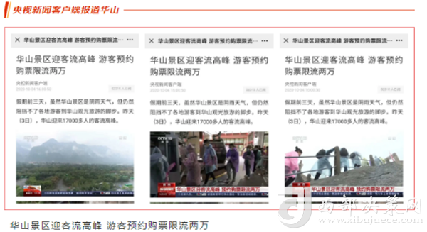 度節(jié)期間,通過央視cctv2【天下財(cái)經(jīng)】、cctv4、cctv13【新聞30分】、cctv13【新聞直播間】、央視網(wǎng)【國(guó)慶假期·出游】、央視網(wǎng)學(xué)習(xí)強(qiáng)國(guó)、央視新聞客戶端、新華社等國(guó)家級(jí)媒體對(duì)景區(qū)度節(jié)工作、游覽秩序、特色服務(wù)等方面進(jìn)行轟炸式報(bào)道;聯(lián)合陜西日?qǐng)?bào)、陜西電視臺(tái)、渭南日?qǐng)?bào)、渭南電視臺(tái)、三秦都市報(bào)、陜西旅游資訊、騰訊網(wǎng)、新浪網(wǎng)、網(wǎng)易陜西、鳳凰陜西等30余家主流媒體對(duì)景區(qū)度節(jié)期間各項(xiàng)工作及實(shí)時(shí)風(fēng)景進(jìn)行跟蹤報(bào)道,共計(jì)發(fā)布各類宣傳稿件239篇,全面提升景區(qū)旅游熱度。