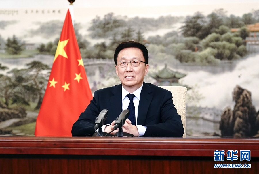 11月10日,博鰲亞洲論壇國際科技與創(chuàng)新論壇首屆大會(huì)開幕式在澳門舉行。中共中央政治局常委、國務(wù)院副總理韓正以視頻方式發(fā)表主旨演講?!⌒氯A社記者 丁林 攝