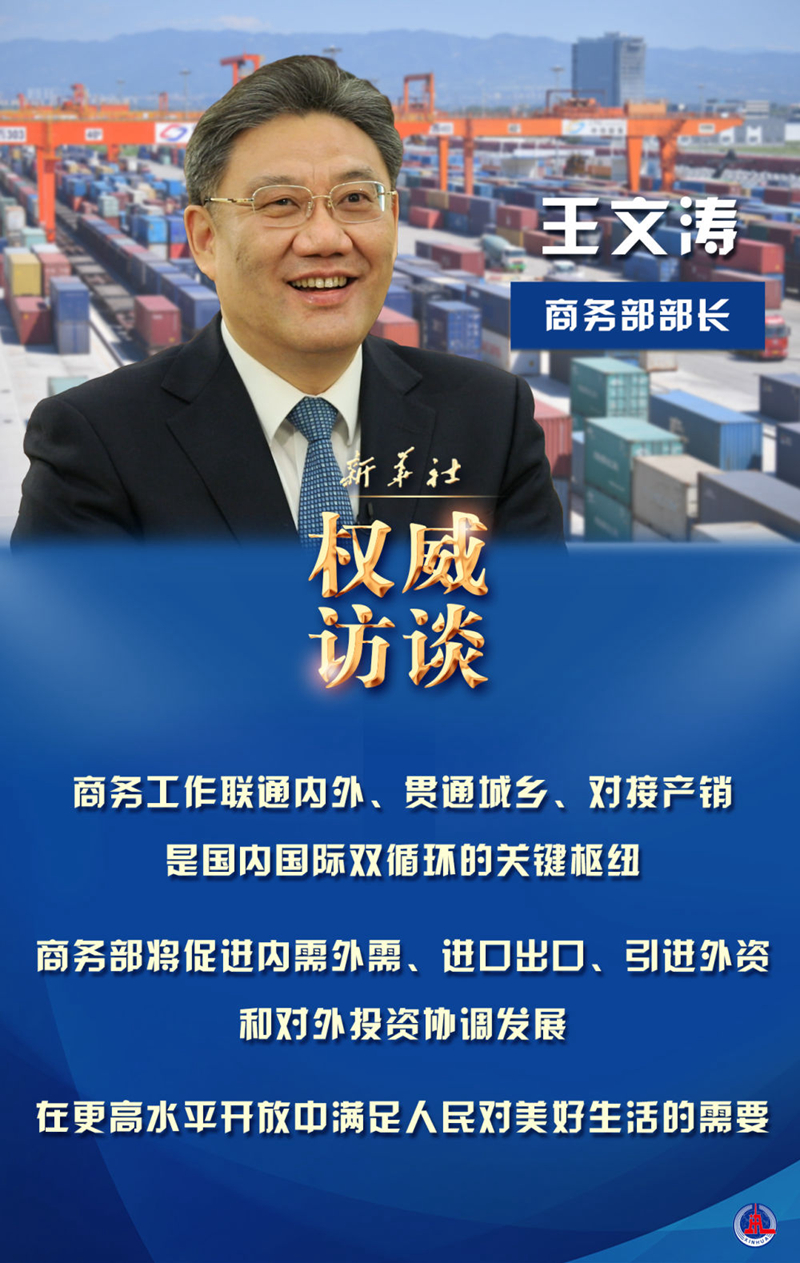 新的一年,促消費(fèi)有何新招?如何繼續(xù)穩(wěn)住外貿(mào)外資基本盤?自貿(mào)區(qū)(港)建設(shè)有哪些新動(dòng)作?自貿(mào)“朋友圈”如何構(gòu)建?新華社記者采訪了商務(wù)部部長(zhǎng)王文濤。