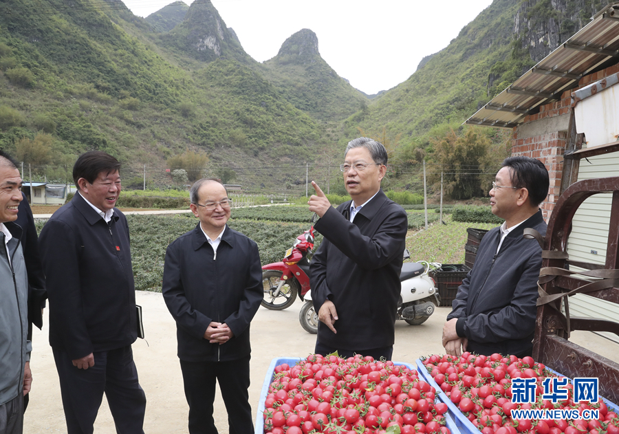 3月21日至24日,中共中央政治局常委、中央紀(jì)委書記趙樂際到廣西調(diào)研。這是3月21日,趙樂際在百色市田陽區(qū)露美村調(diào)研。 新華社記者 丁林 攝